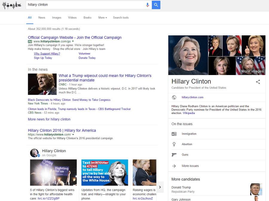 Search Engine Land has been analyzing Trump & Clinton’s use of a new Google program that highlights a carousel of a candidate’s own content. While both candidates have been using this feature, both have been using it inconsistently at their own discretion.